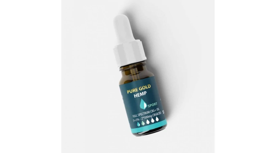 A Pure Gold Hemp 5+5% teljes spektrumú CBD olaj 10ml-es kiszerelése összesen 500mg CBD-t és 500mg CBG-t tartalmaz.