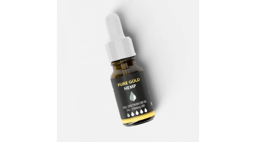 A Pure Gold Hemp 5% teljes spektrumú CBD olaj 30ml-es kiszerelése összesen 1500mg CBD-t vagyis kannabidiolt tartalmaz.